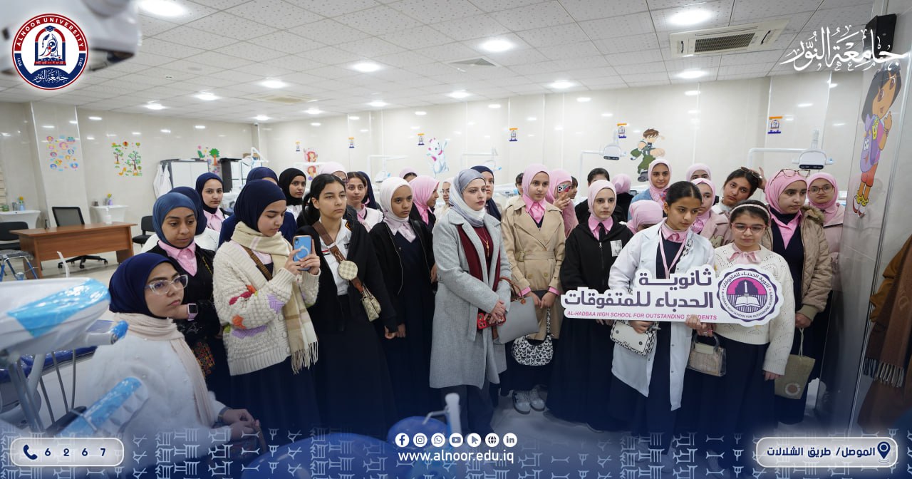 في إطار تعزيز التعرف المبكر لطلبة المرحلة الإعدادية على واقع مؤسسات التعليم العالي في محافظة نينوى، زار وفد من ثانوية الحدباء للمتفوقات جامعة النور صباح يوم الخميس الموافق 2025/12/4، ضمَّ نخبة من الطالبات المتفوقات وعددًا من تدريسياتهن.