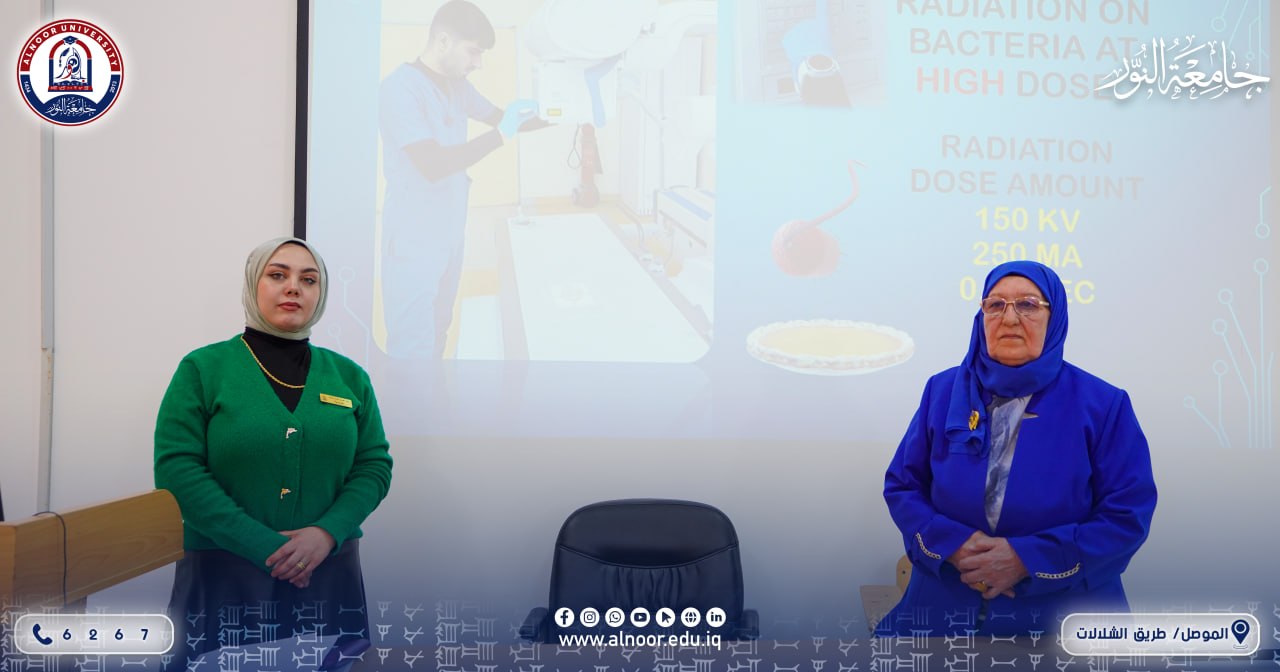 أقام قسم تقنيات المختبرات الطبية في كلية التقنيات الصحية والطبية بجامعة النور، يوم الأربعاء الموافق 2026/4/15، ورشة علمية بعنوان (تأثير الإشعاع على الأحياء المجهرية)، ألقتها الأستاذة المساعدة الدكتورة منى طاهر النفطچي.